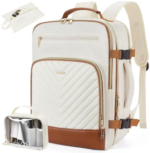 Clear Toiletry Bag: Our travel backpack carry on flight approved comes with 1 shoe pocket( 16.5" x 4.38" x 9.25" ) and 1 TSA approved clear toiletry bag(6" x 2.5" x 8") to keep your essentials organized. Perfect for your next getaway! ^^ Practical & Comfortable Design - Designed with convenience in mind, the Telena laptop backpack features two padded grab handles on the top and side, allowing for easy retrieval from overhead bins, making it a practical choice for any traveler. This backpack also boasts padded back padding and adjustable shoulder straps, ensuring maximum comfort without feeling bulky or heavy ^^
