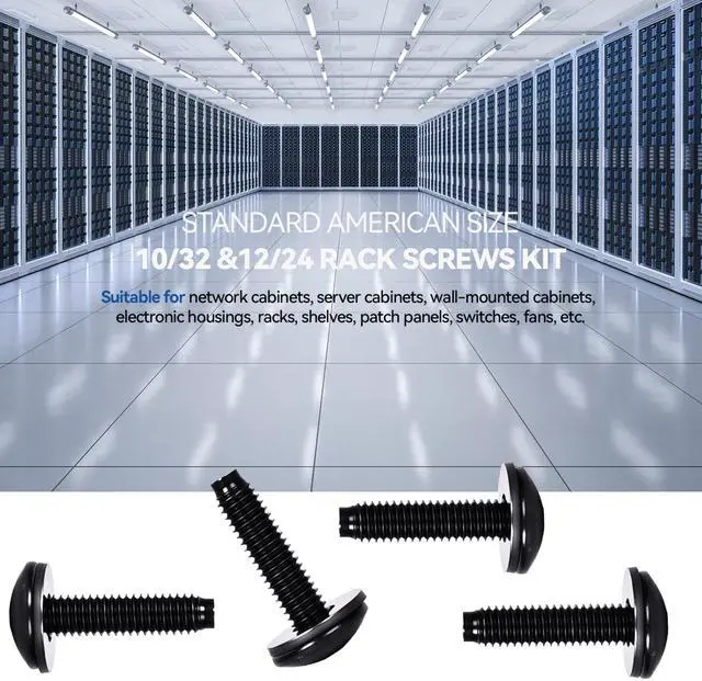 Our rack installation screws are made of carbon steel with a black galvanized coating featuring high strength resistance to corrosion good oxidation resistance and excellent color matching This ensures reliability and strength meeting your server installation requirements ^^ This kit includes 120 10/32 rack screws 120 graphite washers the Settings required for seamless connection ^^ Our 10/32 rack screws feature tight threads uniform force distribution and are less prone to deformation and sliding during rolling and installation Deep and clear flat beams can make your work easier and enhance your productivity ^^ These 10/32 rack screws are suitable for installation in server racks routers A/V and other equipment chassis racks and cabinets ^^ Our 10/32 rack screws have sharp clean accurate and burr-free threads The graphite gasket can better protect your rack You can quickly and easily set up your server or audio cabinet allowing you to focus on the most important thing - powerful performance