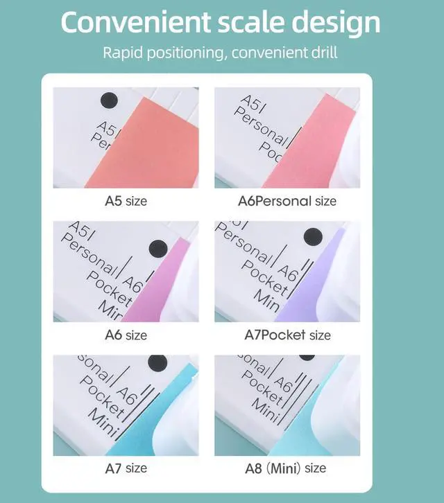 Punch Capacity: This hole puncher is capable of printing 8 sheets of A4 paper, and ideal for punching and binding 3/6 holes in A8 (mini), A7, A7 Pocket, A6, A6 Personal, and A5 size loose-leaf pages.