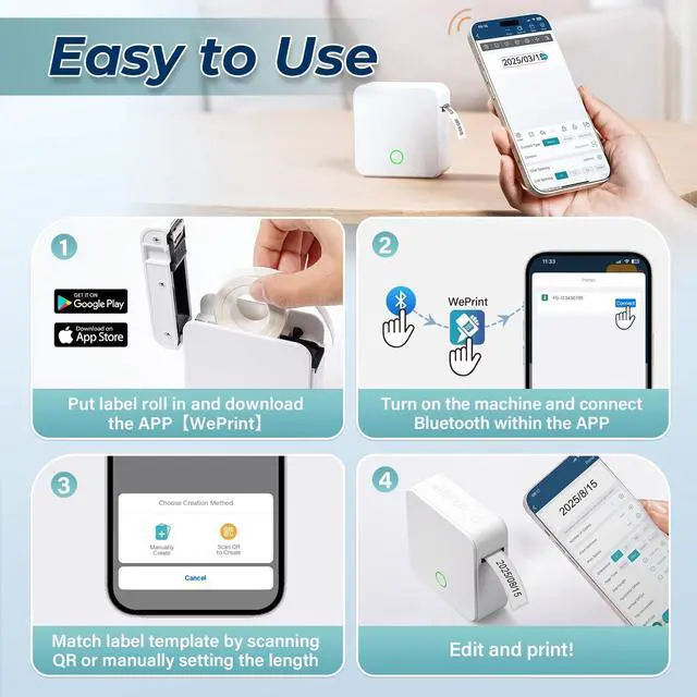 Use: Download app and start creating labels without registration or account setup required. All label maker usage info is available in product images, detail page images, electronic manuals, in-pack manuals, and product videos. For further issues, you can contact us via DETONGER offer 24/7 service
