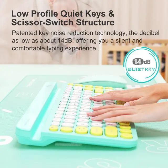 • Quiet and Comfortable Typing: Enjoy a peaceful and comfortable typing experience, even in a noisy environment, thanks to the patented QuietKey technology. The keyboard reduces noise from 35dB to 14dB, ensuring you can work anywhere without disturbing anyone.