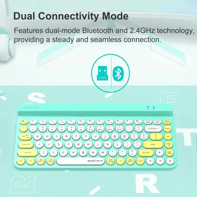 Bloody FBK30 Multi-Device QuietKey Wireless Keyboard, 2.4G and Bluetooth Dual Mode, Up to 4 Devices, Portable with Integrated Stand for Mac iOS Windows Android (Avocado)