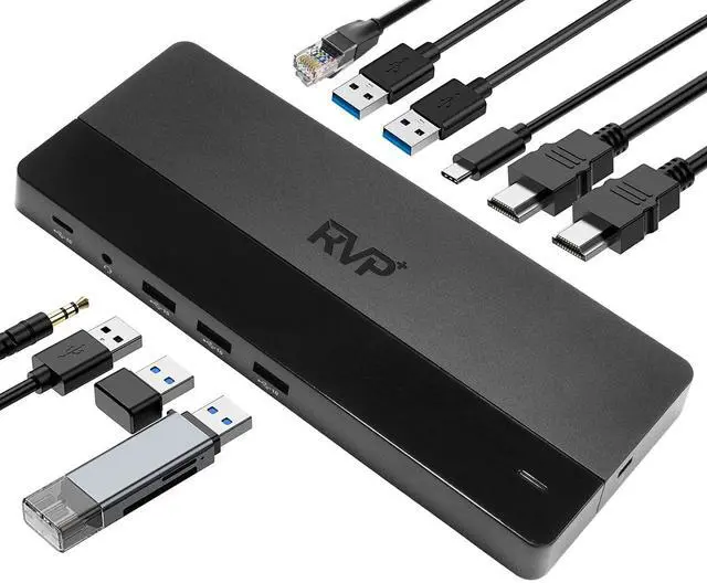 Next-Gen USB-C Docking - Elevate your creative experience with the RVP+ Universal USB-C Dock, the next generation of USB-C one-cable universal docking solutions. Say goodbye to limitations and embrace vivid 4K displays or multiple 1080p screens, seamless notebook charging, and versatile connectivity. ^^ One Connection, No Limitations - Streamline your workflow with the RVP+ Universal USB-C Dock, allowing you to connect all your peripherals simultaneously, transfer USB data at lightning-fast 10 Gbps speeds, and enjoy a stable wired network connection. Experience ultimate convenience and efficiency. ^^ Jaw-Dropping 4K or Multiple Displays - Break free from limitations and experience vivid 4K on a single screen or elevate your multitasking game with dual 4K @ 30 Hz or triple 1080p displays.