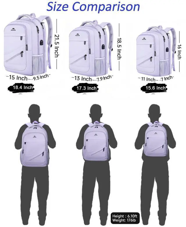 L Extra Large Capacity: 18 inch laptop backpack can be converted into carryon travel backpack suitable for 5 days traveling. Padded laptop compartment can fit 18 inch laptops computers. This travel laptop backpack with roomy space for all essentials such as travel clothes, business tech accessories, college school books. Ensuring the zipper is fully down with the puller at the bottom. This keeps your belongings safe from unexpected openings when you're walking ^^