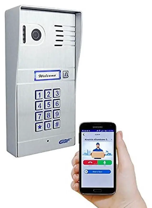 Convenient - Answer and view callers at your door remotely via your mobile iOS or Android device, whether you are at home or abroad. The WiFi IP Doorbell sends a push-notification and directly connects with your smart mobile devices. Advanced Motion Detection can be easily programmed from the App with the ability to define the area of interest, sensitivity, and active time of day/days of week. Easy setup connects to your smart device in minutes. ^^ Smart - Our latest upgrade to the original GBF WiFi IP Doorbell adds a Smart Keypad that is programmed through your smart phone; through the App you can remotely change your personal keypad PIN, or generate temporary or permanent PIN codes to grant your guests access to your premises.
