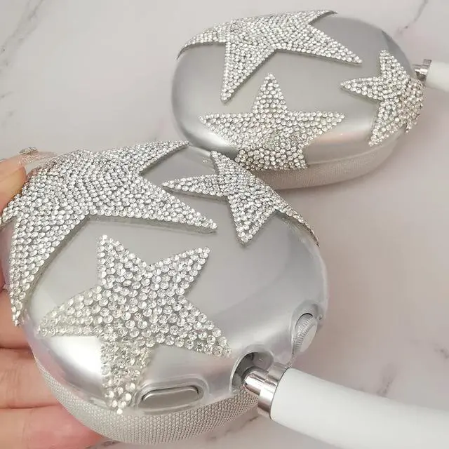 Bling Design: This AirPods Max case features a glittering rhinestones stars design made of hand and show off your fashion and unique style ^^ Made of high quality soft TPU, protect your AirPods Max from scratch proof, shock proof ^^ Perfectly matches with AirPods Max ^^ Support wire charging ^^ Easy to install