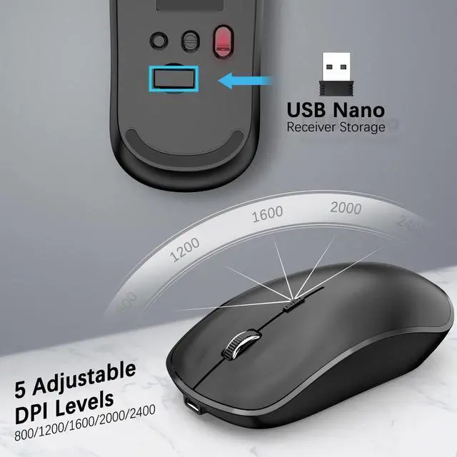 The wireless mouse is also built-in newest noise-free switches for quiet click. Both keyboard and mouse give a world of silence; great for conference, board presentation, library, coffee shop, night work, travel, etc. ^^ HIGH PRECITION-Wireless Mouse DPI 2400 in 5 levels-You can easily change the cursor sensitivity of this cordless mouse depending on your activities; usually 1600 DPI for office, DPI 2000-2400 for 4K resolution monitor or entertainment like gaming at home.