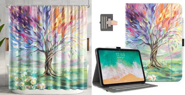 Design ]: Cutebricase is a team that focuses on original design. This protective iPad 10th Generation case and shower curtain both with oil painting tree design makes your device look pretty and unique. Ideal gift for men, women, teens, boys and girls.