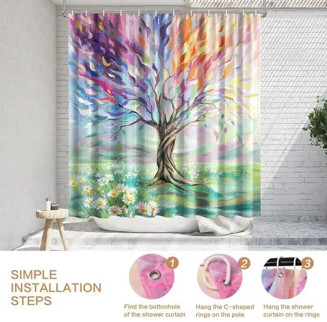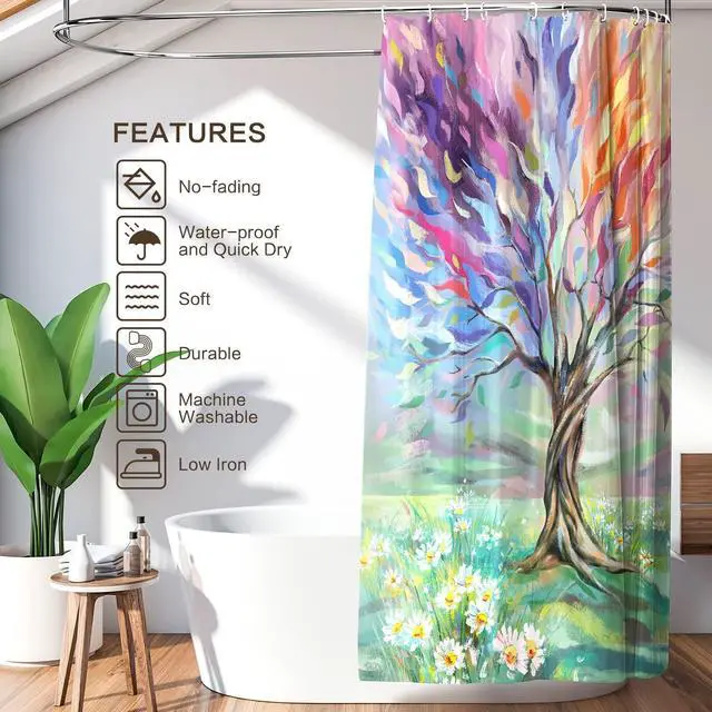 Material & Pretty Design]: Shower Curtains are crafted from 100% polyester fabric, which is durable, non-fading and wrinkle-free for long term use. Advanced HD pattern printing technology ensure this unique colorful painting tree shower curtain with bright colors and clear images, bring you a pleasant bath time. ^^ [ Insist on Original