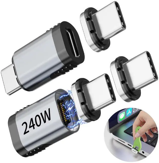 HIGH-SPEED CHARGING & DATA TRANSFER: Experience lightning-fast charging and seamless data transfer with our USB-C Magnetic Adapter. Utilizing Power Delivery technology, this adapter delivers up to 240W of power, ensuring your devices charge quickly and efficiently. Plus, with USB C standard compatibility, enjoy blazing-fast 40Gbps data transmission speeds, perfect for transferring HD movies, music, and files in seconds.