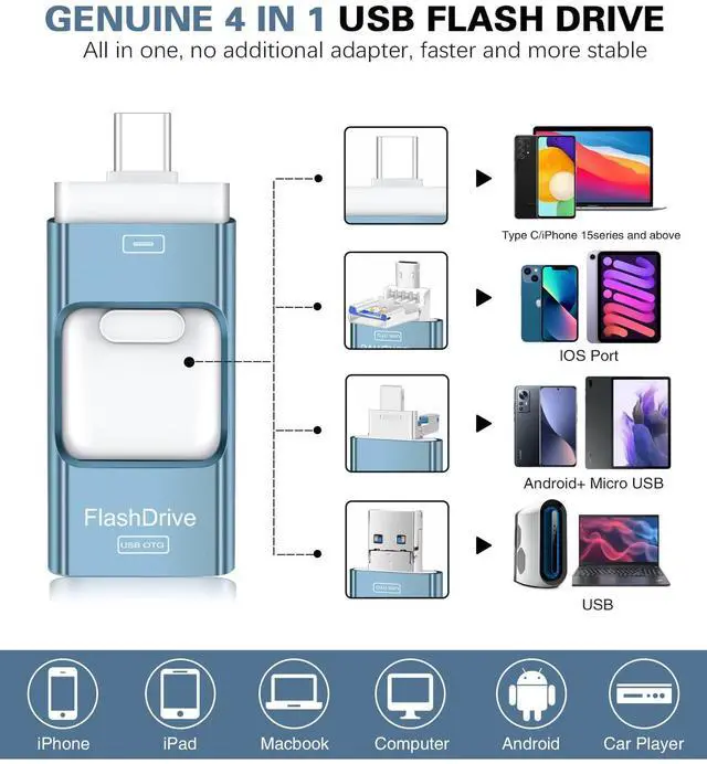 512GB 4 IN 1 PHOTO STICK - High quality aluminum frosted ZARMST usb c flash drive comes in a true 4 IN 1 Design, it has 4 built-in ports (USB-C, iPhone Port, Micro USB and Standard USB A Connector) with no additional adapters to make it more stable. ^^ HIGH SPEED TRANSMISSION CHIP - ZARMST Memory Stick provides an easy and fast way to transfer all kinds of files. Up to 80M/S Read and 30M/S Write Speeds. ZARMST allows you to release the memory on your storage device offline without a data cable or cloud.