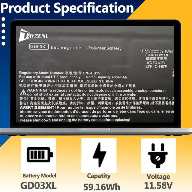 HP Pavilion 16-AG seres: HP Pavilion 16-aq0087nr, Pavilion 16-AG0019AU, Pavilion 16-AG0447NR, Pavilion 16-AG0052AU, HP EliteBook Ultra G1q 14 inch series: EliteBook Ultra G1q G1q8 14, HP OmniBook X 14-fe000 Series; ^^ Compatible C/NGD03XL GD03059XL N66215-005 N66000-1E1 N66000-2C1 N66000-AC1 N66000-B71 HSTNNN-AB1E HSTNNN-OB3K HSTNN-AB1E N66000-1E1 N66000-2C1 N66000-AC1 TPN-DB1V TPN-IB0Z 3ICP5/80/78 GD03059XL-PL ^^ HIGH-PERFORMANCE, LONGER LASTING