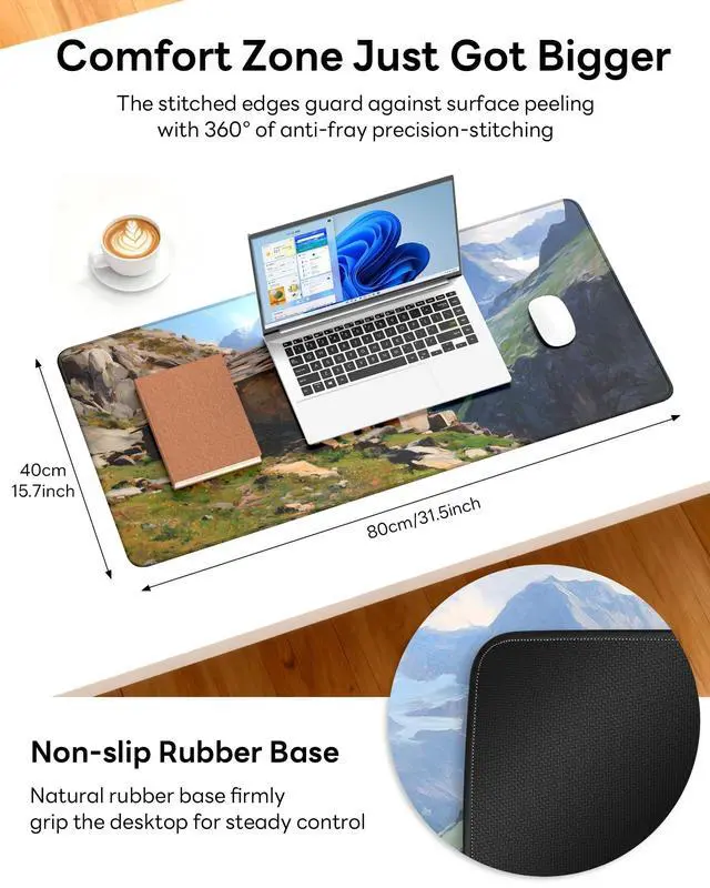Non-slip Rubber Base: The soft & thick rubber backing has a dense non-skid texture, keeping your desk mat firmly in place. This oversized mouse pad stays uniformly flat on imperfect surfaces. Immerse yourself in work or games without annoying mat movement ^^ Easy to