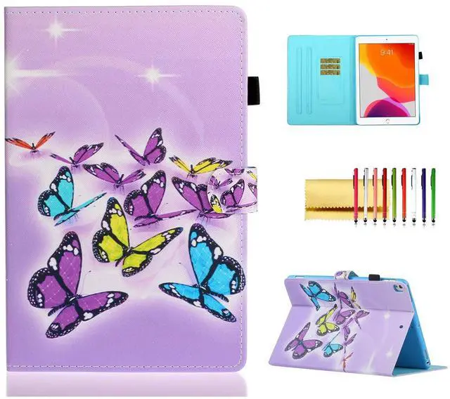 Colorful Painting Wallet Stand Case Flip Cover with Card Slots and Pencil Holder, Protective Cover for iPad 7th Gen/8th Gen/9th Gen 10.2" 2019/2020/2021