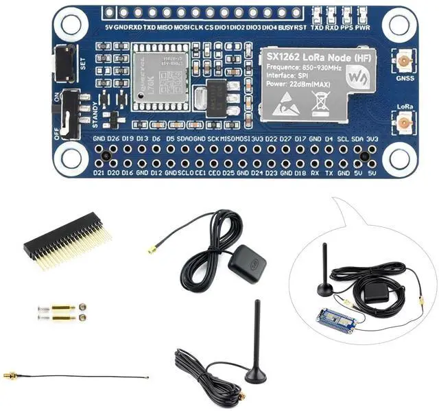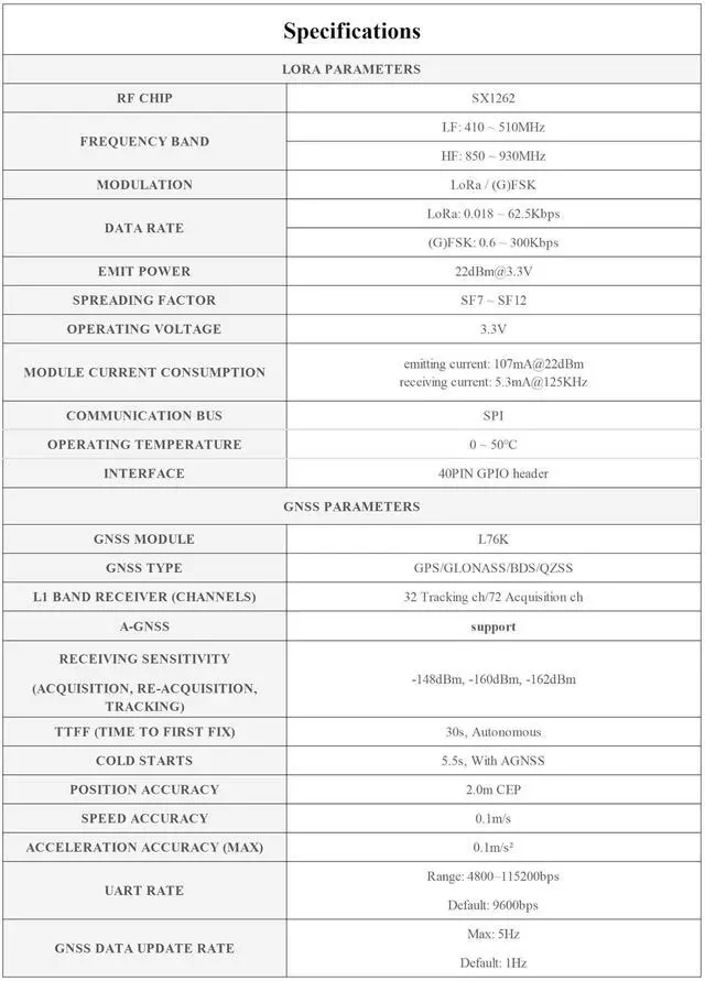 This series of products are LoRa modules using the new generation of SX1262 RF chip, with the features of long communication distance and strong anti-interference ability. This version includes GNSS antenna. ^^ Suitable for Sub-GHz frequency band network, 850~930MHz frequency band. The new generation SX1262 has higher power efficiency and longer transmission distance than the SX1278. ^^ Combined with a LoRa gateway, it can be connected to servers such as TTN to build a LoRaWAN network. Onboard L76K module with GPS/BD support, provides accurate clock and location info for node module.