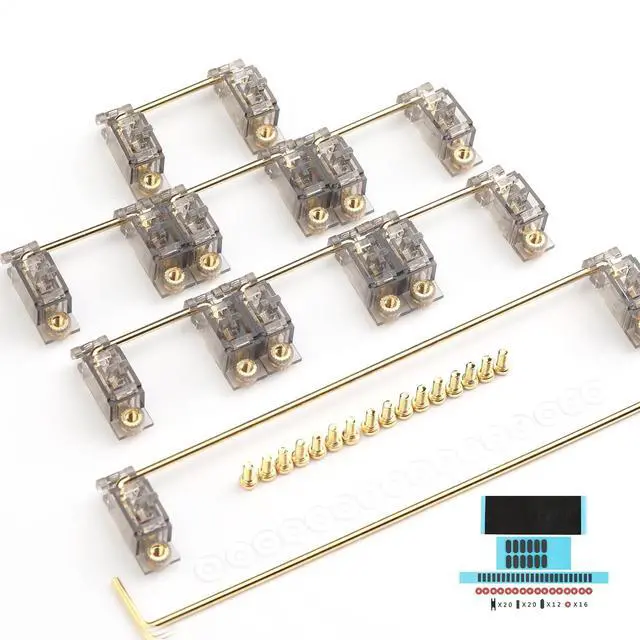 PCB Mount Screw in Stabilizer for Mechanical KeyboardPacking: 7 x 2u 1 x 6.25 u 1 x 7u. Come with stabs pads. Colors: SmokeyThis stabilizers are only PCB stabilizers. This stabilizers is more smoother than the original stabilizers