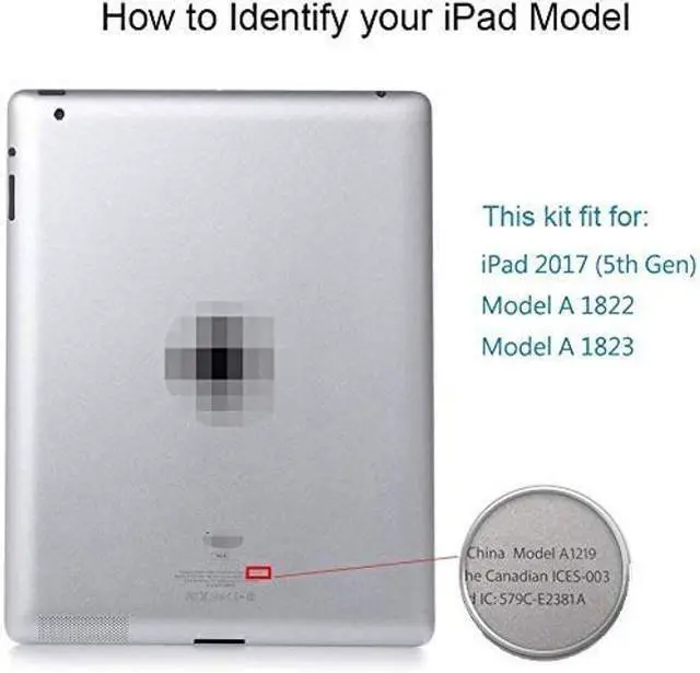 1. Compatible only with IPAD 5 2017 A1822 A1823 ,IMPORTANT: Please check the Model Number before purchasing this Item. You will find the Model Number on the back of your device.