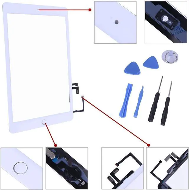 3. Glass screen digitizer complete full assembly for iPad 5 2017 with a spare New Home Button, NOTE:Replacement A New Button Does Not Support Touch ID,Restore only ordinary button functions, you may use original button if in good condition to retain Touch ID capabilities.