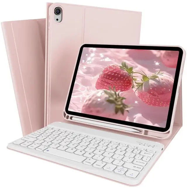 ZOPSGYU for iPad (A16) 11th Generation 11 Inch 2025, 10th Generation 10.9 Inch 2022 Case with Keyboard, Detachable Wireless Bluetooth Keyboard, Multi Angle Flip Cover with Pencil Holder, Pink
