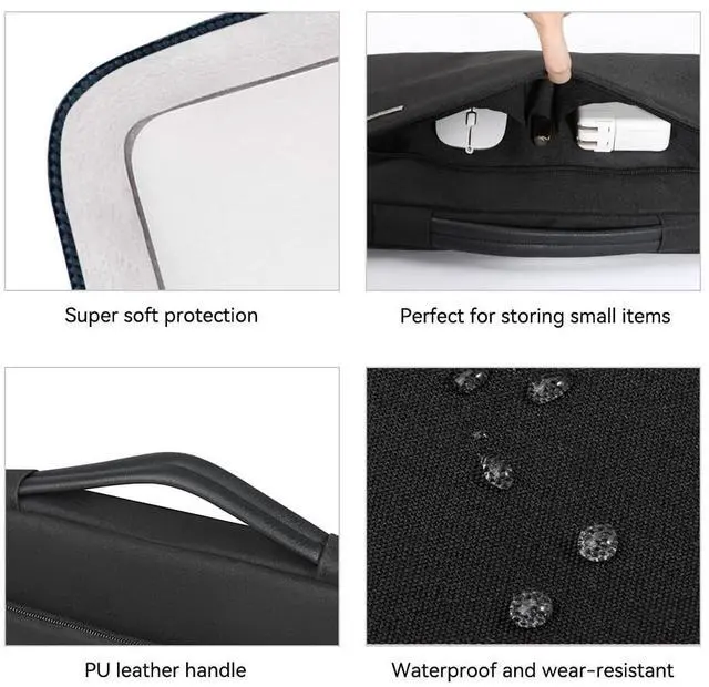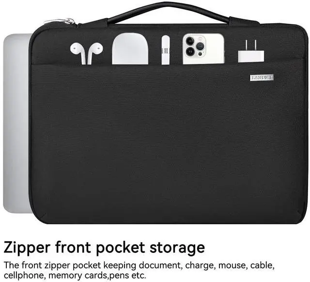 degrees 3 layers protection: protect your tablet or laptop against dust, dirt, scratches and bump ^^ Well Organized - The front big accessory compartment has 2 small pockets inside can store enough accessories such as your phone, iPad Pro, mouse, power charger, pens pencils and other office supplies, classify for your common items ^^ Side Laptop Pocket Design - Special side laptop pocket with easy glide top-quality zipper, this design makes your laptop far from being dropped accidentally. It won't snag or catch your laptop upon opening or closing ^^ Slim and Easy Carry - Carry with the comfortable and flexible leather handle, easy to stretch, slipped inside your backpack, messenger bag or briefcase. It's widely for man or women lady for office ^^ Compatible with Most Laptop - The laptop sleeve is suitable for most laptop, 15-inch New MacBook Air M2, 15" MacBook Pro A1990 A1707, 14.4 -15 Inch Microsoft Surface Laptop /Studio 5/4/3, Dell XPS 15/Vostro/Chromebook 14, 14" HP Stream/EliteBook, Asus Zenbook/VivoBook 14, ThinkPad/Ideapad/Flex/Yoga 14, Acer Swift 14 and fits more other similar size notebook (Please measure your laptop's size carefully)