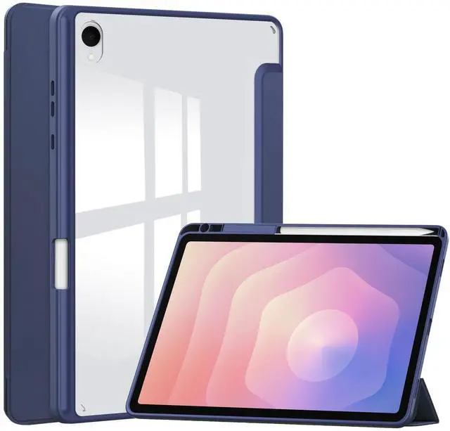 NINKI for Samsung Galaxy Tab S11 Case with Kickstand, {Pencil Slot & Auto Sleep /Wake} Shock-Absorption TPU + PU Leather Clear Back Tablet Cover Protector for Galaxy Tab S11 11inch Case Stand Men Blue