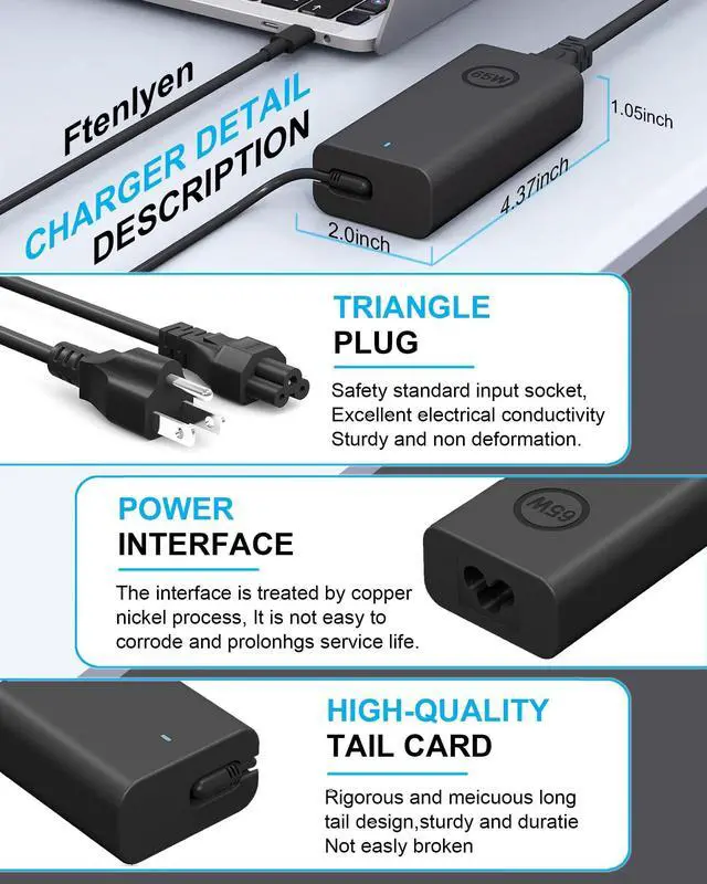 65W USB C Charger Compatible with Dell 14 Plus 2-in-1 DB04250 DB04255, 14 Plus DB14250 DB14255, Pro 14 PC14250 PC14255, Pro 14 Plus PB14250 PB14255, Pro 14 Premium PA14250, Compatible with Dell 16 Plus 2-in-1 DB06250, 16 Plus DB16250 DB16255, Pro 16 PC16250 PC16255, Pro 16 Plus PB16250 PB16255, Compatible with Pro 13 Plus PB13250 PB13255, Compatible with Dell Pro 13 Premium PA13250, Compatible with Dell Pro Rugged 13 RA13250, Pro Rugged 14 RB14250, P192G P191G P200G P199G PA16250 ^^ Compatible with Dell Latitude 3450 3550 7350 3340 (Launched in 2024) Latitude 7410 7400 7420 7430 7440 7350 7200 7210 7275 7285 7230 7310 7320 7330 7340 7300 7370 7389 7390 7450 7640 7650 7455 7030 7212 7520 7530 7220 3120 3140 3301 3320 3330 3390 3300 3400 3410 3420 3430 3440 3445 3500 3350 3510 3520 3530 3540 5175 5179 5289 5290 5310 5320 5330 5340 5350 5400 5410 5420 5440 5430 5510 5520 5530 5540 5450 5500 5550 5455 5401 5285 9330 9410 9420 9430 9440 9450 9510 9520 Laptop ^^ Compatible with Dell XPS 12 13 9350 9360 9300 9305 9310 9315 9320 9340 9365 9370 9380 9390 7390 9440 9250 9345 2024 14 9440 P151G P189G P184G laptop, Compatible with Dell Chromebook 3100 3100 2-in-1 3110 3110 2-in-1 5190 5190 2-In-1 3300 3380 3400, Compatible with Dell Inspiron-13 14 15 16 7390 7400 7440 7415 7420 7425 7430 7430 7435 7490 7486 7306 7630 7635 7640 7590 7620 5310 5280 5320 5330 5440 5482 5410 5430 5582 5620 5625 5630 5640 5645 3420 Laptop, Compatible with Dell Vostro 5310 5320 ^^