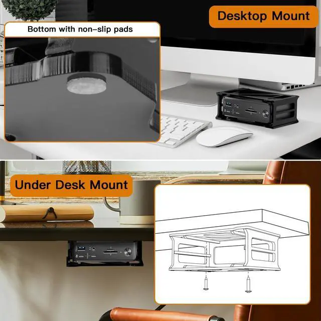 Thunderbolt 3 DockFEATURES: Easy and secure mounting for Anker Docking Station (PowerExpand 13-in-1 USB-C Dock / PowerExpand Elite 13-in-1 Thunderbolt 3 Dock) Acrylic material, durable and stylish; Allows full access to power button, output jacks and cables; The holder can be installed on the wall, under the table, on the desktop; Desktop stand - No assembly, practical and aesthetic; Wall Mount / Under Desk Mount - Mounted by screws, will not fall down.!