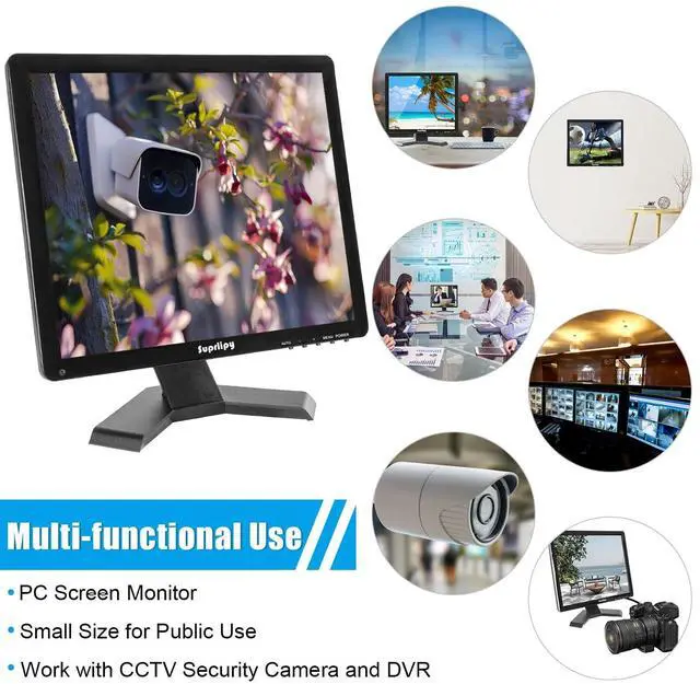 Suprlipy LCD Monitor Display, 17 inch 1280x1024 Resolution TFT LCD monitor, the image is clear and exquisite, colourful. It has sleek, slim design with an elegant stand seamlessly blends into any tight space, can be mounted on the wall with Hanging wall. Multi-interface input support HDMI, VGA, USB, AV, BNC. - HDMI PortHDMI not only delivers superior digital video and audio, but also, connects both to the Monitor or TV with only one cable, display different scenes and views in one screen. - VGA PortAny PC with an VGA port can be connected to this LCD monitor and used as a mini PC monitor to all your favorite variety of input options, deliver superb analog video.
