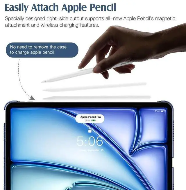 • Auto Wake/Sleep: This iPad Air 11 inch case Supports auto wake/sleep function, and protects and extends battery life. Precise cutouts, with all buttons and ports accessible, such as Touch ID unlock function and Apple pencil charging
