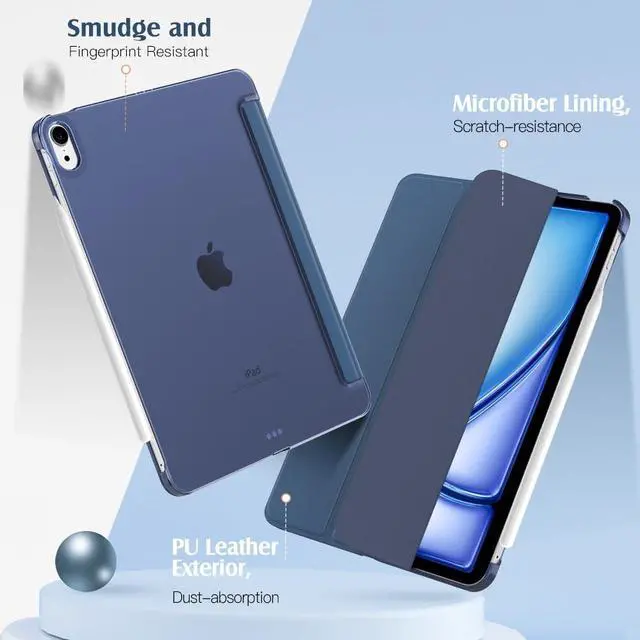 • Great Protection: This iPad Air 11 inch case with front PU leather and back hard PC provides protection against scratches, shocks, drops, and impacts. It is convenient for you to see the Apple icon with the frosted translucent back