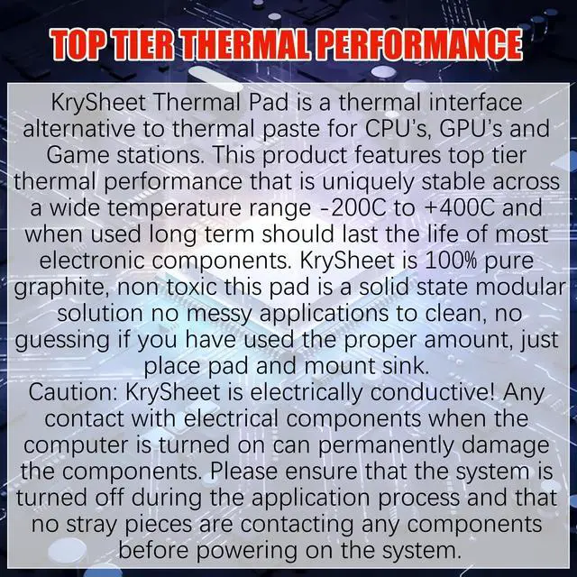 Please note: KryoSheet pads are electrically conductive. Always follow the provided instructions carefully to avoid potential damage or safety hazards.