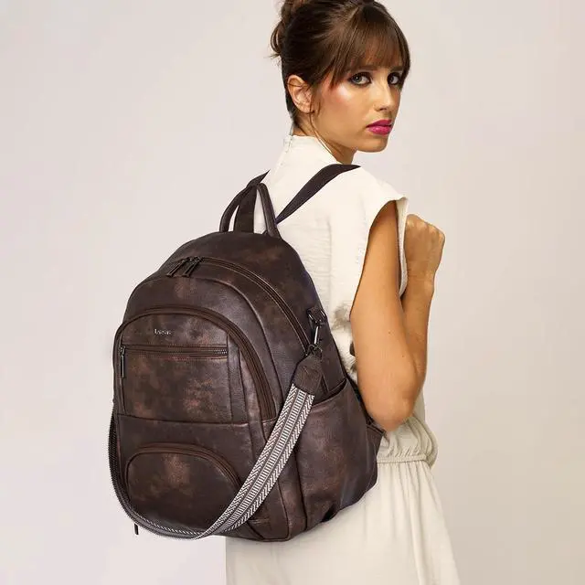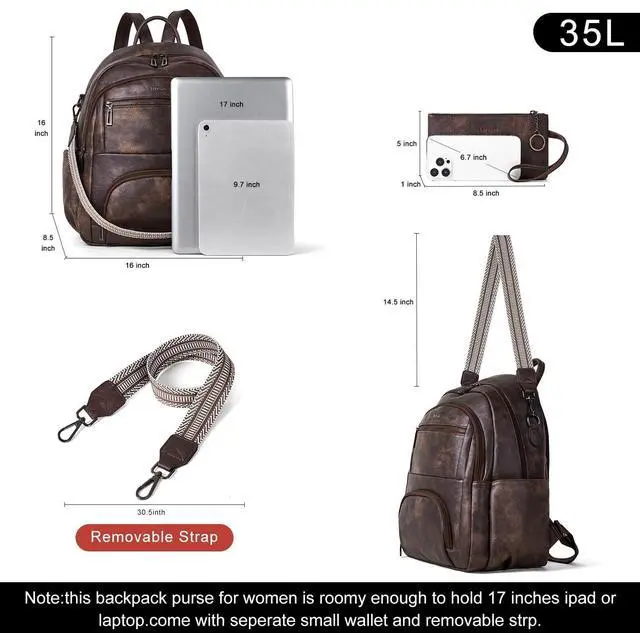 Ample Pockets: Our backpack purse is designed with spacious compartments and pockets, It is very rommy in the main compartment with laptop slot and safety pocket, suitable for work, travel essentials and personal items. front has two seperate compartment with inside pocket, muitifunctional and roomy space.
