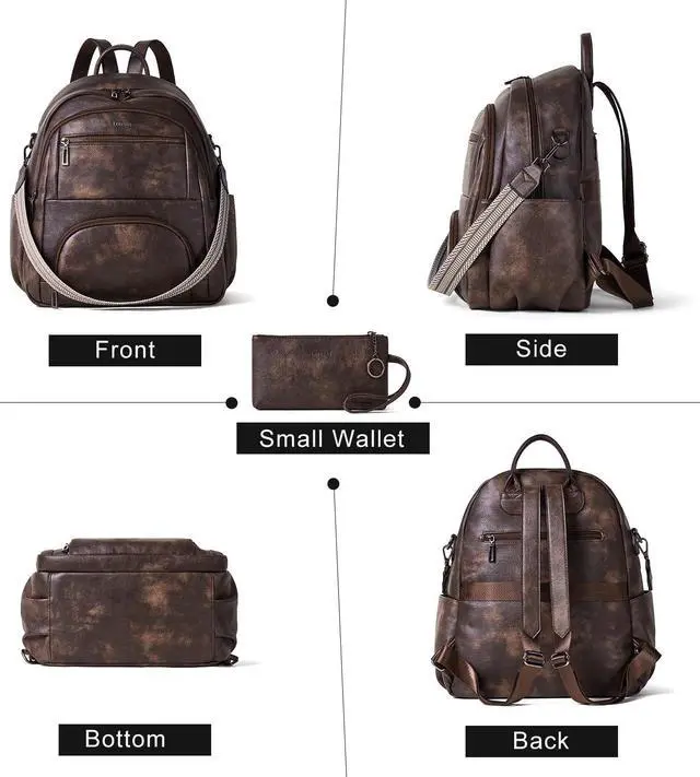 ^^ Well-made Material: This travel backpack purse is made of high-quality PU leather material with reinforced stitching, gun-tone hardware, smooth zipper, soft fabric lining, quality construction, designed with fashion and good looking appearance and convertible sturdy shoulder straps for convenience. It also come with a small wallet for convient use. ^^ Spacious Design and