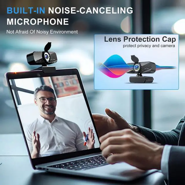 Wide Angle Lens: The ILAOLIU Webcam for pc With a resolution of 1920 x 1080P, focus on home office, social video, game video, and professional video live streaming, design and optimization. Its wide-angle lens delivers crisp, clear images and smooth 30fps video. And the front side uses a whole piece of carbon fiber plate, which not only improves the durability of the camera, but also improves the overall aesthetics. ^^ Built-in Noise-Canceling Microphone Our Computer Camera are equipped with the latest noise-canceling microphones. It picks up your voice and filters out background noise, so your audience can hear you clearly even in a noisy environment. When the webcam is not in use, you can easily cover the lens with the included protective cover to protect your privacy while protecting your computer webcam from scratches, impacts and stains. ^^ Automatic Light CorrectionThe camera assembly is equipped with automatic light correction technology, which can automatically adjust the image brightness and restore the color according to the ambient light, allowing you to show your best even in dim or harsh light, helping you achieve the best optical effect.