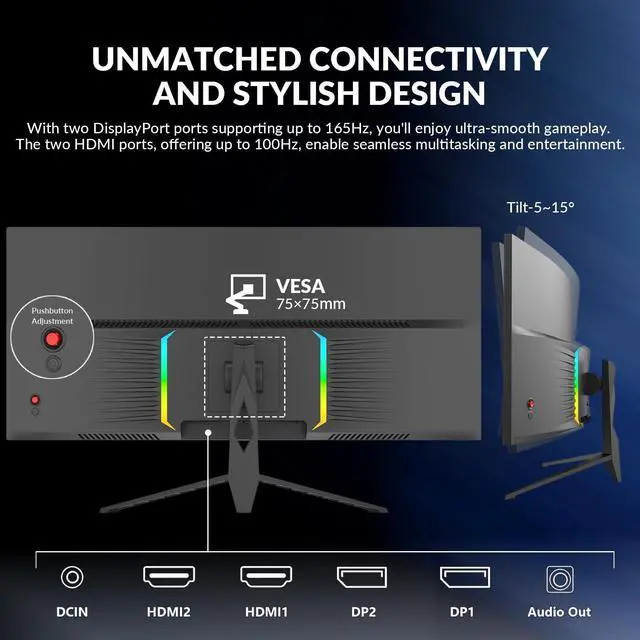 With 300 nits brightness, it ensures vivid visuals even in brightly lit environments, making it ideal for gaming, streaming, or daily productivity. Designed for Versatility and Immersion The sleek black design and immersive 1500R curvature provide a cinematic viewing experience thats perfect for extended use. Equipped with HDMI 2.0 and DP 1.4 ports, along with 75x75mm VESA mount compatibility, this monitor fits easily into any workspace or multi-monitor setup. Peace of Mind with 365-Day Warranty Weve got you covered with a 365-day warranty and responsive customer support. Whether you need assistance or have questions, our dedicated team is here to ensure you have a seamless and satisfying ownership experience.