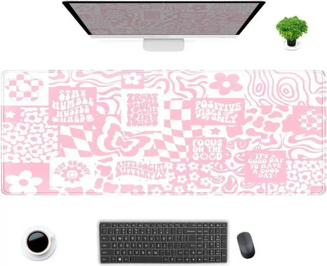 Pink Boho Desk Pad XL Large Gaming Mouse Pad Retro Hippie Boho Desk Mat with Stitched Edges, Non-Slip Rubber Base Mousepad Computer Laptop Keyboard Mouse Mat Desktop Protector Pad 31.5x11.8 in