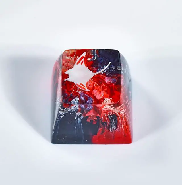 Manta Ray Artisan Keycap Blood Red Ocean Coral R1 SA Profile Custom Sea Creatures Keycaps 1U ESC Handmade Gaming Resin Key Cap Cherry MX Switch Compatible Mechanical Keyboard Manta Ray Lover Gift