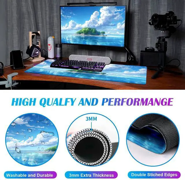 Large size design: Sky And Sea The size of the office mouse pad is 90 x 40 x 0.3 centimeters ( 35.4 x 15.7 x 0.12 inches). This desktop mat is large enough to accommodate your computer, laptop, keyboard, while always protecting your desk and allowing you to move your mouse freely.
