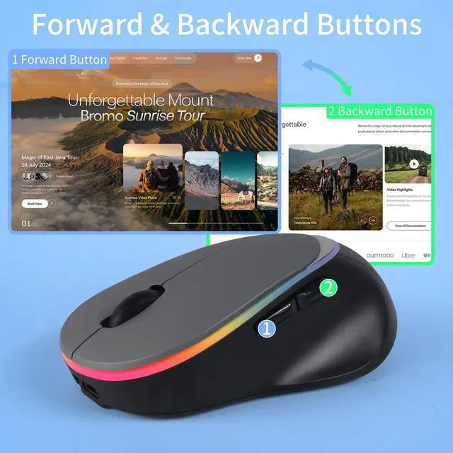 You can freely choose the wireless mouse with side buttons movement speed to reduce muscle fatigue and enhance work efficiency. Whether it's handling spreadsheets, browsing the web, or playing games, this wireless computer mouse for laptop ensures the smoothness and responsiveness of operations. This illuminated wireless mouse features an ergonomic, streamlined design, along with a lightweight body and soft-touch finish for a secure, comfortable grip. This silent-click USB bluetooth wireless mouse ensures quiet clicking and scrolling, minimizing distractions, so you don't have to worry about disturbing others. This portable wireless mouse boasts a streamlined design with a matte finish, making it a stylish addition to modern devices.