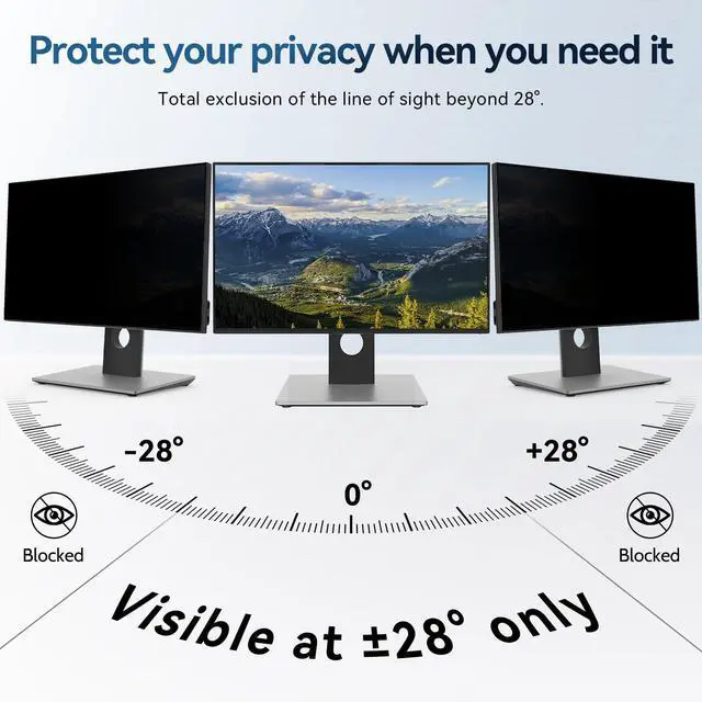 Improved Privacy FilterProtescreen 27 inch privacy screen filter after 200 times updates, Use revolutionary micro-louver technology. The 27 inch computer privacy filter limits viewing angle to +/- 28 and provide clear vision on the front. If see from the sides, the greater the angle the darker the screen. Anyone who tries to peek over the side will only see a dark screen! So with a computer privacy screen protector 27 inch, the privacy of your computer screen will never be leaked. ^^ Easy to Install & ReusableWith the innovative magnetic installation method, comes with four single-sided bound magnets for enhanced magnetism.
