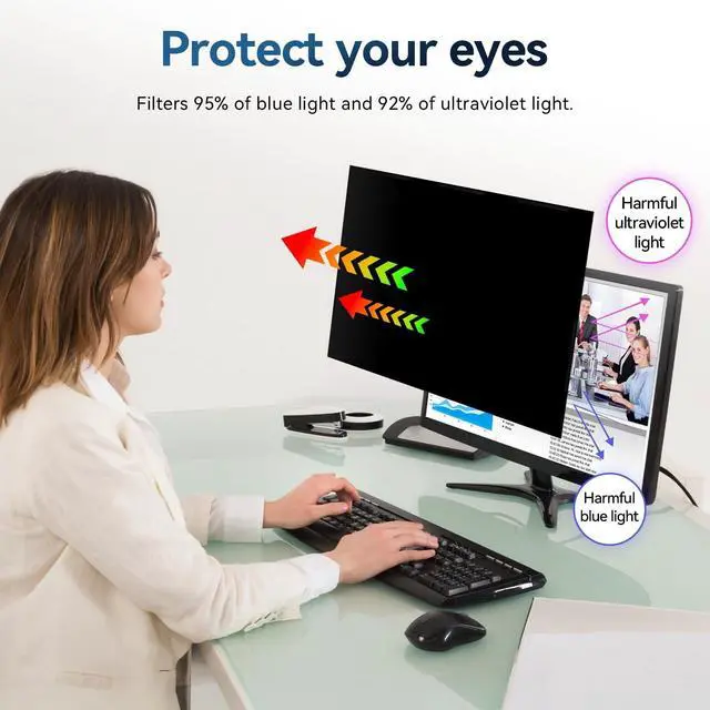 Simply place 27 inch privacy screen for monitor near the screen and press lightly, then it will be automatically adsorbed to complete the installation. No glue and worry-free. ^^ Eyes Protection & Anti scratchComputer screen privacy shield 27 inch monitor use filtering optical materials imported from Japan can reduce 92% of blue light and 98% of UV light, and filter all harmful light emitted from the screen. The high-transparent and reinforced built-in protective layer not only presents high-definition picture quality, but also protects your screen from scratches. Hurry up and place an order, Own privacy screen for computer monitor 27 inch, Protect your screen and eyes.