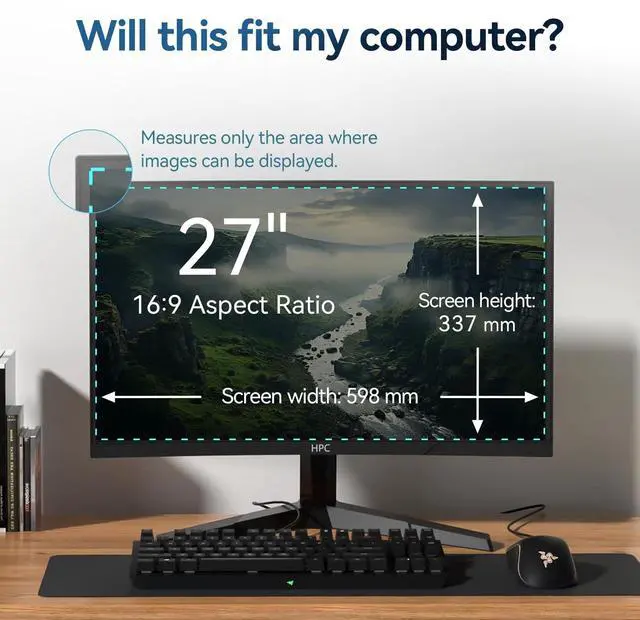 ^^ Brilliant Anti-glare & Function OptionsOur privacy screen protector for computer 27 inch monitor protects your eyes by blocking 95% of reflected light. Create a clear and transparent visual space and reduce eye damage by glare. And It is a reversible privacy screen filter. A matte surface effectively prevents blue light and glare, while a glossy is more privacy-resistant. You can choose flexibly according to your needs. In addition to this it also protects your screen from dust and scratches. ^^ Perfect for 27 Inch MonitorsPrivacy screen for computer modeled with a real machine to ensure a perfect match in size.