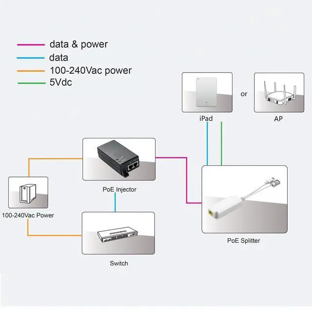 • PoE Splitter 5V 2.5A for the Tablet PC or mobile and other DC5V device