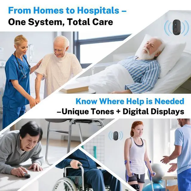 Wireless & Easy Setup: The caregiver pager system is simple to installjust plug in the receiver and stick the call buttons on walls, wheelchairs, tables or other surfaces. Ideal for homes, hospitals, or clinics, it ensures help is always within reach ^^
