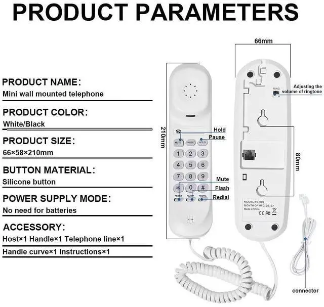 Easy Setup: Simple installation process by connecting line cord to phone jack and network, with handset connection via coiled cord