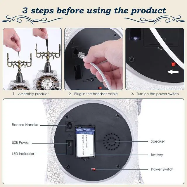 ^^ Easy to Use: The operation is very simple and does not require specialized skills, everyone can easily use it. Just pick up the handset of Audio Guest Book Phone, After the beep, guests can record their own messages, which are saved Forever on an included 32GB Micro TF Card.