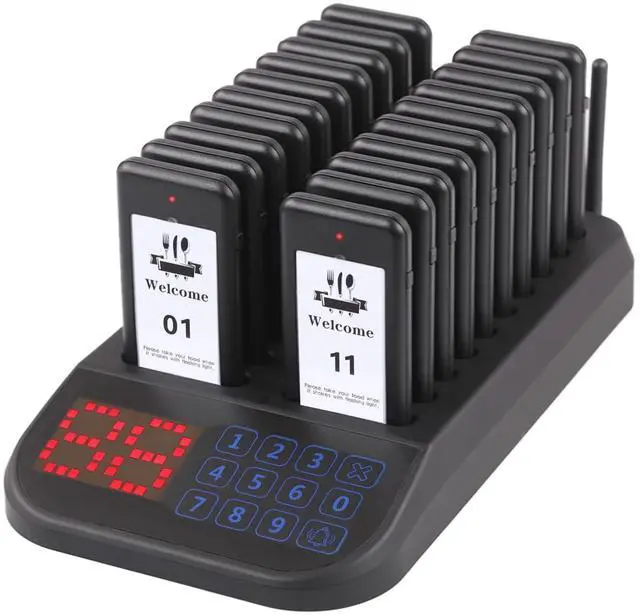 ^^ Package: 1 * charging base transmitter with touch screen keyboard and 20 pagers ^^