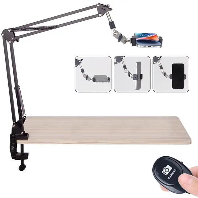 YCCLDIPL Upgraded Phone Holder, Fixed for Shooting and scanning, Suitable for desks, desks, Offices, Kitchens, with Clip for Photo Album scanning - Black