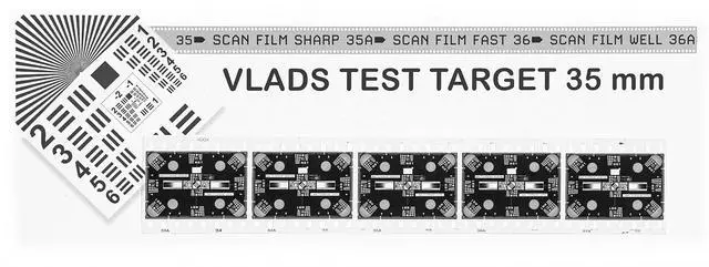 The target allows you to evaluate the resolution of any given lens and compare different lenses. With meticulous preparation and the use of Vlads Test Target, photographers can digitize their film with confidence, secure in the knowledge that the resulting images will faithfully represent the original. The Test Target is available in a variety of film formats, including 35mm, MF type 120, and 4x5", and is produced using the finest-grain film available, guaranteeing top-quality results. The full list of "Vlads