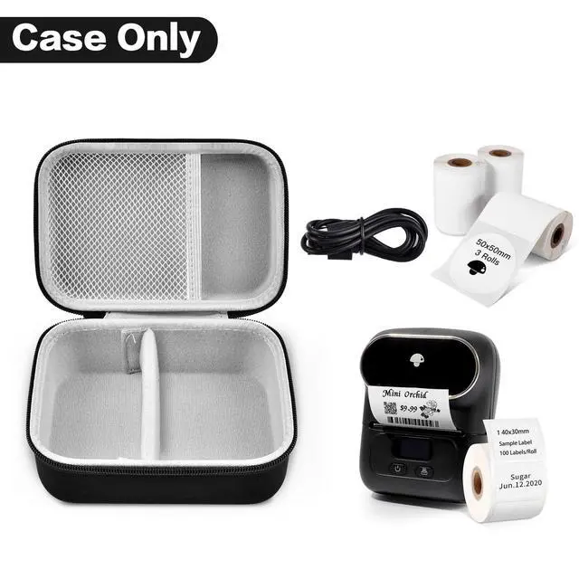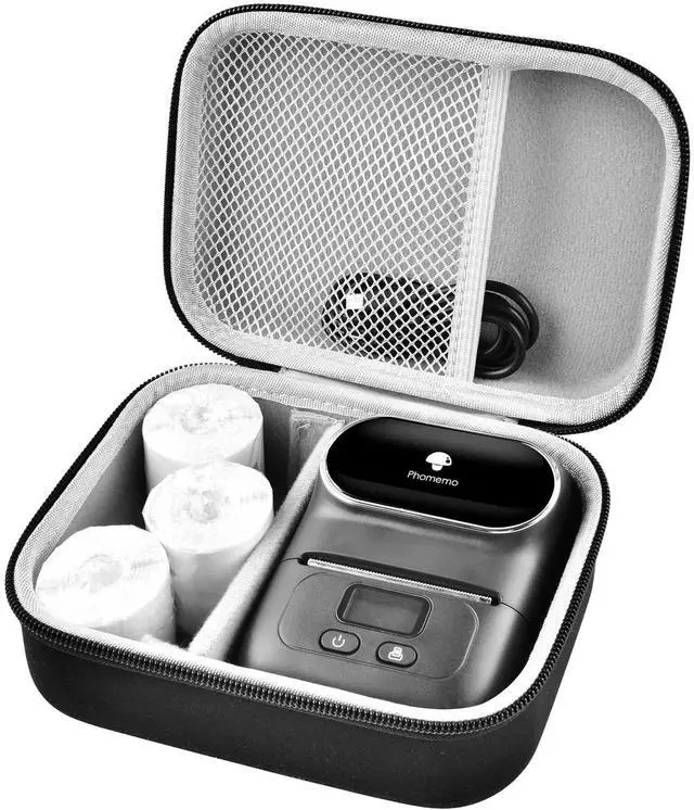 Case Fit for: Label maker organizer case perfect fit for phomemo M110 / for Phomemo M110S Label Maker- Portable Bluetooth Thermal Label Maker Printer, bluetooth label printer case with mesh pocket, large enough for barcode printer, for phomemo thermal paper x 3, cable and other accessories, Size for phomemo label printer holder: 6.69 x 4.76 x 3.42 inches. (Bag only) ^^ Premium Materials for Phomemo Label Printer Case Provide Full Protection: Lable maker organizer bag is made of excellent eva material. Which is good shock-proof, and anti-skid. It also protects for phomemo m110 label from damaging, impacting, and falling. Qr code printer case with hard material for phomemo m110s printer has a good protective effect, Please be assured use because of the hard material of the shipping label printer bag. ^^ Reasonable Internal Design for